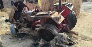 नंगलाराई में आकाशीय बिजली गिरने से ट्रैक्टर जलकर खाक