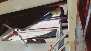 लिप्टिस का पेड़ गिरने से मकान की दीवार व छप्पर धराशायी