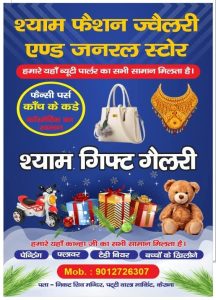 आपकी सभी जरूरतों का एक ही ठिकाना श्याम फैशन ज्वैलरी, एंड जनरल स्टोर एवं गिफ्ट गैलरी