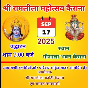 कैराना। नगर की सांस्कृतिक एवं धार्मिक परंपराओं को जीवित रखते हुए श्री रामलीला कमेटी कैराना द्वारा प्रतिवर्ष की भांति इस वर्ष भी भव्य श्रीरामलीला मंचन का आयोजन किया जा रहा है।