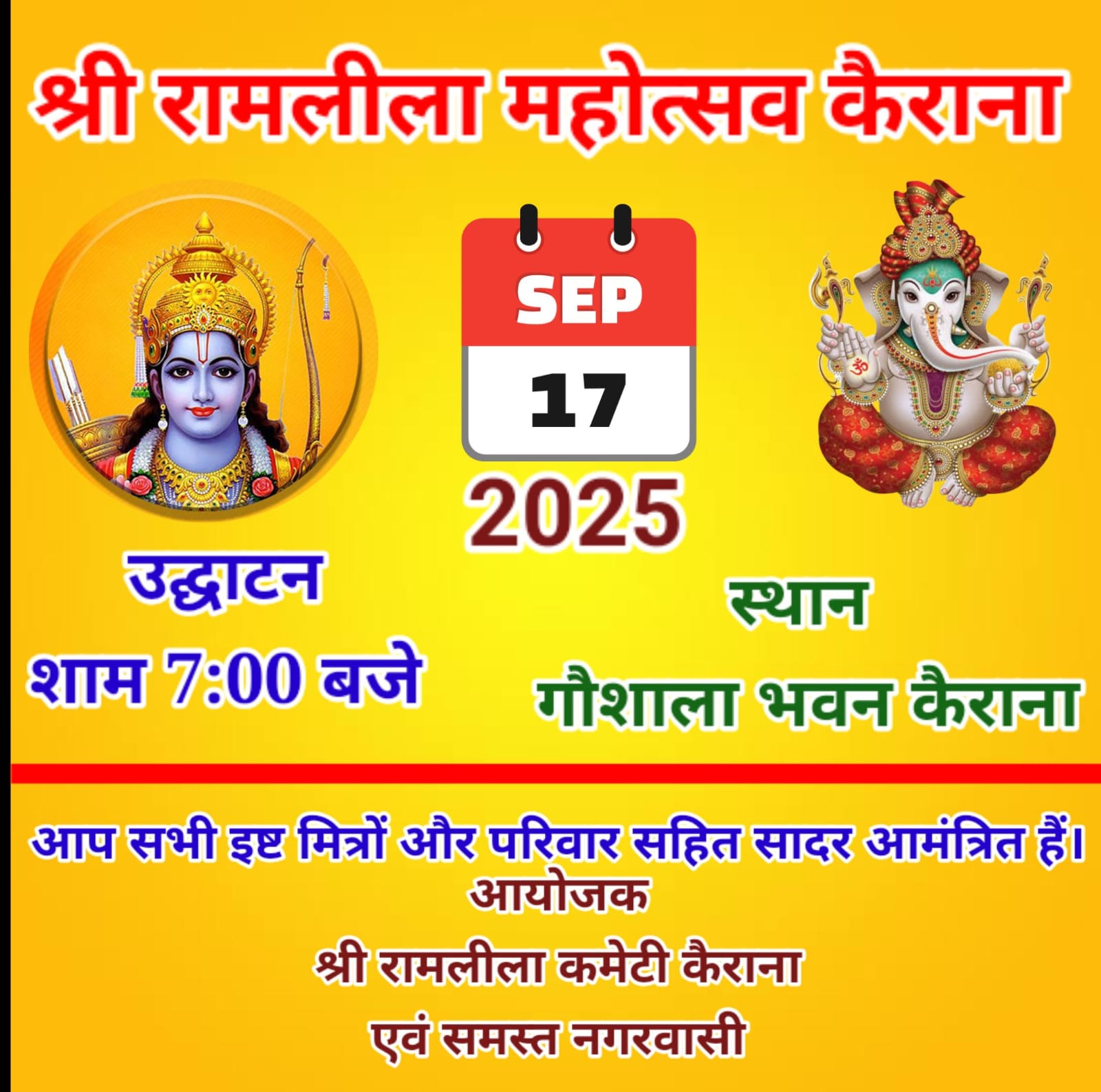 कैराना में भव्य श्रीरामलीला मंचन का शुभारंभ 17 सितंबर से