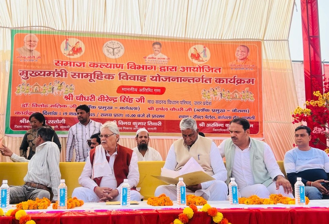 कांधला। विकासखंड क्षेत्र के गांव पंजोखरा स्थित रॉयल पैलेस में मुख्यमंत्री सामूहिक विवाह योजना के अंतर्गत भव्य समारोह का आयोजन किया गया। इसमें कांधला एवं कैराना विकासखंड क्षेत्र के 99 नवविवाहित जोड़ों का विवाह वैदिक एवं पारंपरिक रीति-रिवाजों के साथ संपन्न कराया गया।कार्यक्रम में मुख्य अतिथि के रूप में पहुंचे भाजपा एमएलसी वीरेंद्र सिंह ने सभी नवदंपतियों को आशीर्वाद देते हुए उनके सुखद दांपत्य जीवन की शुभकामनाओं के साथ विदाई दी। सामूहिक विवाह में हिंदू व मुस्लिम दोनों समुदायों के जोड़ों ने एक ही मंच पर परिणय सूत्र में बंधकर सौहार्द और सामाजिक एकता का संदेश दिया।समारोह के दौरान समाज कल्याण विभाग के अनिल कुमार ने मुख्यमंत्री सामूहिक विवाह योजना तथा सरकार की अन्य लोक-कल्याणकारी योजनाओं की विस्तृत जानकारी दी। उन्होंने बताया कि यह योजना आर्थिक रूप से कमजोर परिवारों के लिए अत्यंत लाभकारी साबित हो रही है, जिससे समाज में सामूहिकता की भावना को बढ़ावा मिलता है।भाजपा एमएलसी वीरेंद्र सिंह ने डबल इंजन सरकार की उपलब्धियों पर प्रकाश डालते हुए कहा कि सरकार बिना किसी भेदभाव के जरूरतमंदों तक योजनाओं का सीधा लाभ पहुंचा रही है। उन्होंने मुख्यमंत्री सामूहिक विवाह योजना को सामाजिक उत्थान और संवेदनशील शासन का प्रतीक बताया। इस मौके पर, विकासखंड अधिकारी रोहतास कुमार, कृषि एग्रीकल्चर, जयदेव सिंह, विनोद मलिक, पंकज प्रधान, सहित विकासखंड के अधिकारी और ग्रामीण मौजूद रहे।