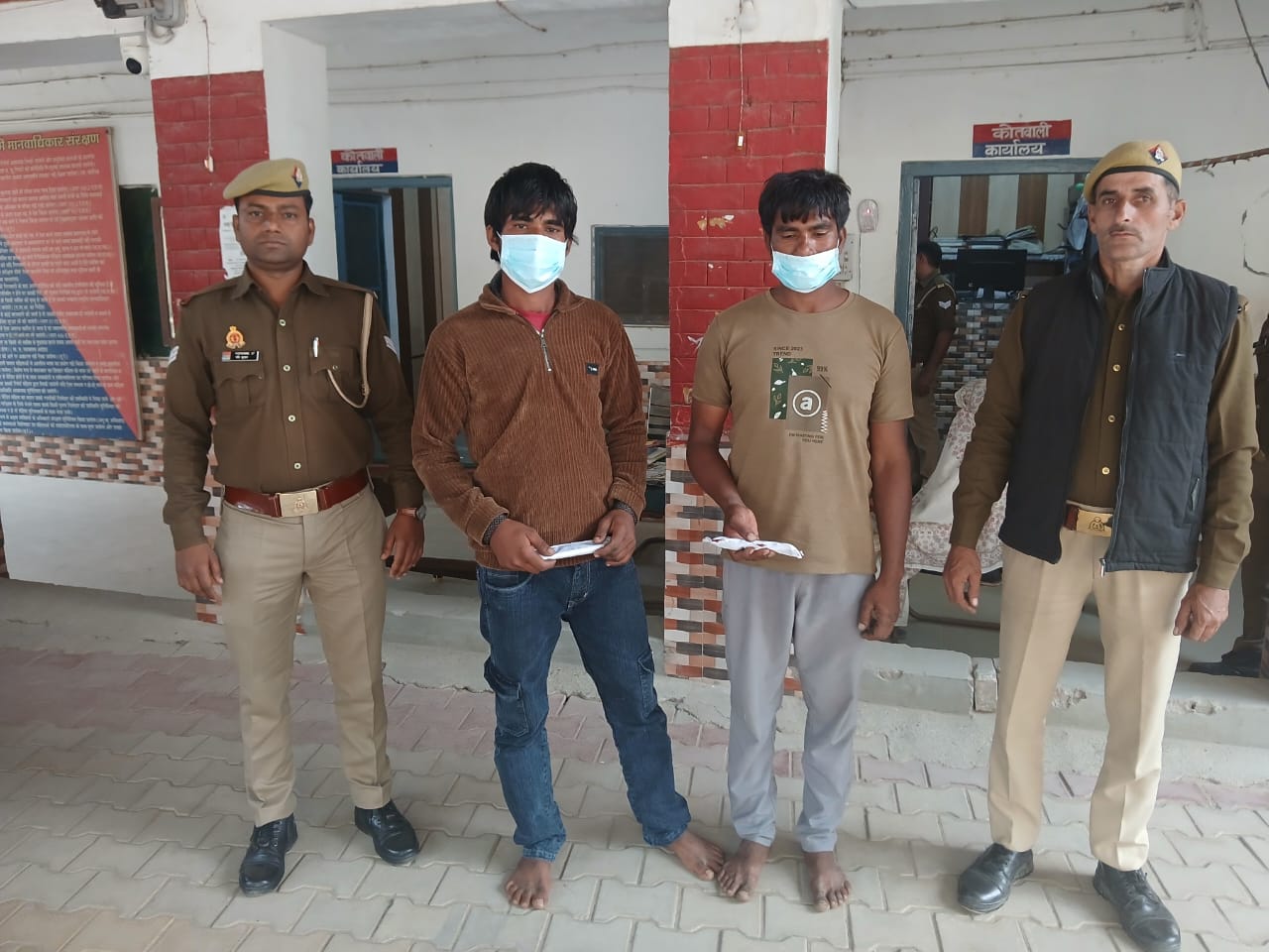 है। पुलिस ने अभियोग दर्ज कर तीनों व्यक्तियों को जेल भेज दिया है। एसपी के आदेश पर खंद्रावली चौकी प्रभारी बिजेंद्र सिंह रावल पुलिस टीम के साथ नहर पटरी पर संदिग्ध व्यक्ति और वाहनों की चेकिंग कर रहे थे। चेकिंग के दौरान पुलिस ने दो संदिग्ध युवक पकड़ लिए जिनके कब्जे से चाकू बरामद हुए। पूछताछ करने पर दोनों ने अपने नाम शहजाद व दूसरे ने सरवर निवासी ग्राम बरनाहवी थाना कैराना बताया। दूसरी और पुलिस ने कैराना मार्ग स्थित जिडाना रजवाहे की पटरी से कच्ची शराब सहित एक अभियुक्त को गिरफ्तार किया है। पकड़े गए अभियुक्त ने अपना नाम गुलफाम निवासी जनपद शामली बताया। गुरुवार को पुलिस ने तीनों अभियुक्तों के विरुद्ध कानूनी कार्रवाई करते हुए अभियोग दर्ज करने के बाद जेल भेज दिया है।