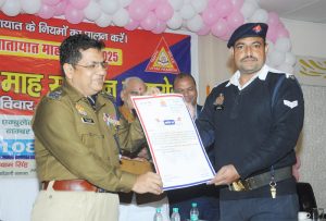 यातायात पुलिसकर्मियों, यातायात माह में सहयोग करने वाले छात्र-छात्राओं व उद्यमियों का सम्मान