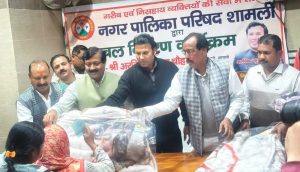 शामली। सोमवार को नगर पालिका द्वारा जरूरतमंदों को ठंड से बचाव के लिए कंबलांे का वितरण किया गया। इस अवसर पर डीएम अरविन्द कुमार चौहान ने नगर पालिका के इस प्रयास की सराहना करते हुए कहा कि समाज के प्रबुद्ध लोगों को गरीबों की मदद के लिए आगे आना चाहिए।