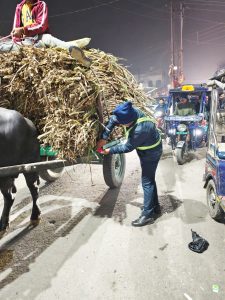 जानकारी के अनुसार एसपी एनपी सिंह के निर्देश पर बढते कोहरे के कारण होने वाली दुर्घटनाओं पर अंकुश लगाने के लिए यातायात पुलिस विशेष अभियान चला रही है। इसी अभियान के तहत यातायात पुलिसकर्मियों द्वारा सडक सुरक्षा को सुदृढ और सुरक्षित बनाने के लिए शहर के मुख्य मार्गों व प्रमुख चौराहों पर लोगों को यातायात नियमों के प्रति जागरूक किया। साथ ही ट्रैक्टर ट्रालियांे व बोगियों पर रात में चमकने वाले रिफ्लेक्टर भी लगाए गए तथा रात के समय सावधानी से वाहन चलाने के लिए जागरूक किया। इसके अलावा सडक सुरक्षा एवं सुचारू यातायात के लिए सडकों पर किए गए अतिक्रमण को भी हटवाया गया, साथ ही अतिक्रमण करने वालों को भी कडी चेतावनी दी गयी तथा यातायात नियमों का पालन करने की अपील भी की।