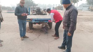 यातायात पुलिस ने शुगर मिल में ट्रैक्टर ट्रालियों व बोगियांे पर लगाए रिफ्लेक्टर